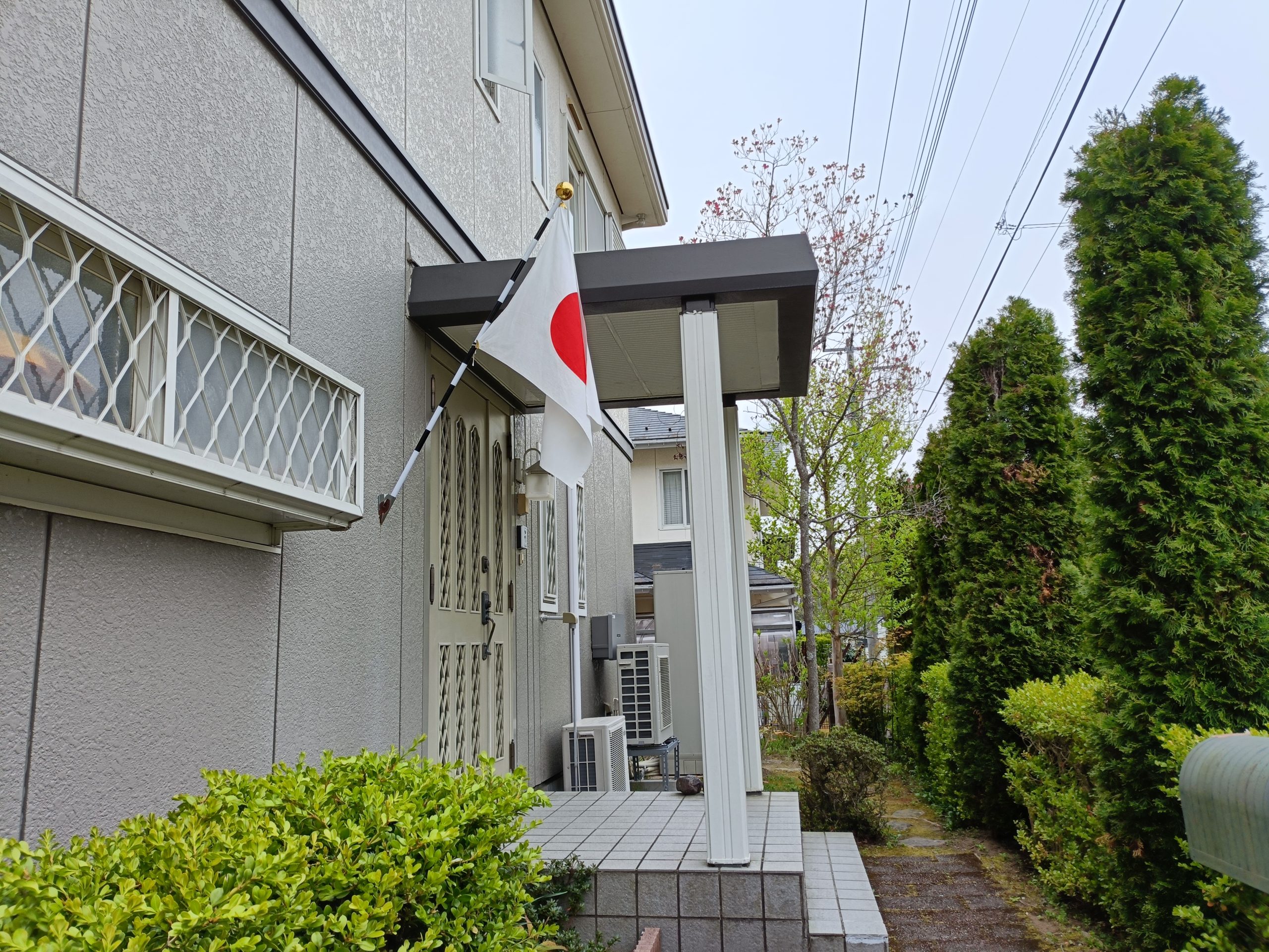 写真は我が家の玄関先の日本国旗です。
