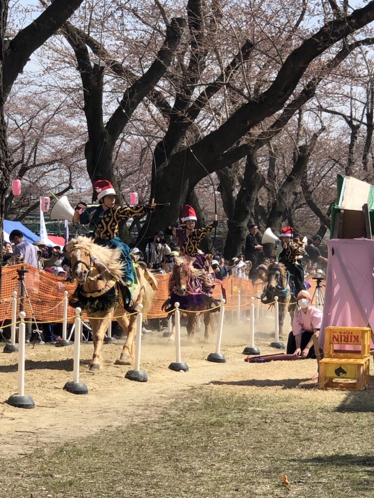 気温の上昇とともに桜の花も散り始め、過ごしやすい季節になりました。4月14日(日)、町長からのお誘いで、青森県十和田市で開催される「桜流鏑馬」を研修に行きました。