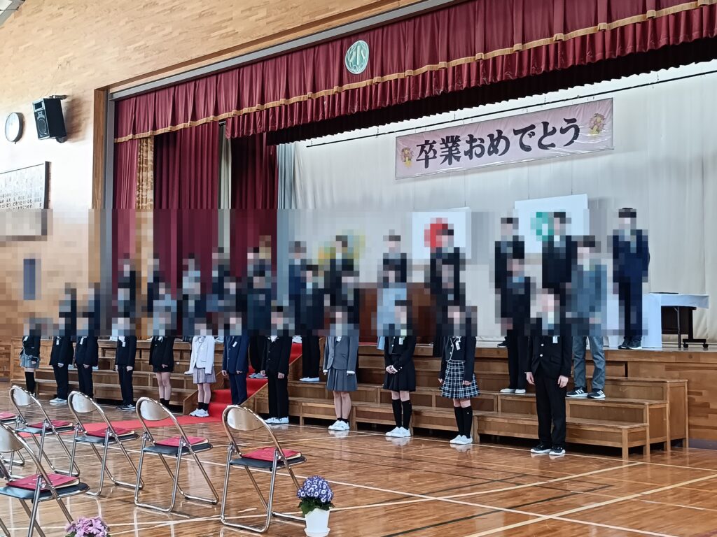 卒業生は1クラス37名(昨年は43名、一昨年は44名。今年の37名中36名がしらかし台中学校に進み、1名は宮城教育大学付属中学校に進むとのこと)。6年間の小学校生活を締めくくり新たな門出となる卒業式に相応しく、皆服装正しく緊張した感じでした。小学生ではあるものの少し大人びた印象を持ちました。また、同僚議員のGさんの息子さん、消防団仲間のKさんのお嬢さん、Sさんの息子さんも卒業だったので大変身近に感じられた卒業式でした。