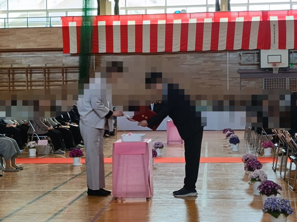 町長は利府第2小学校の卒業式に参列したため、代理として福島氏(都市開発部長)が祝辞を述べました。「①ご両親やお世話になった方へ、是非「ありがとう」と感謝の言葉を伝えて下さい。②皆さんは無限の可能性を持っています。何でも「やってみよう」という挑戦の気持ちを忘れずに。ふるさと利府町は応援しています。」