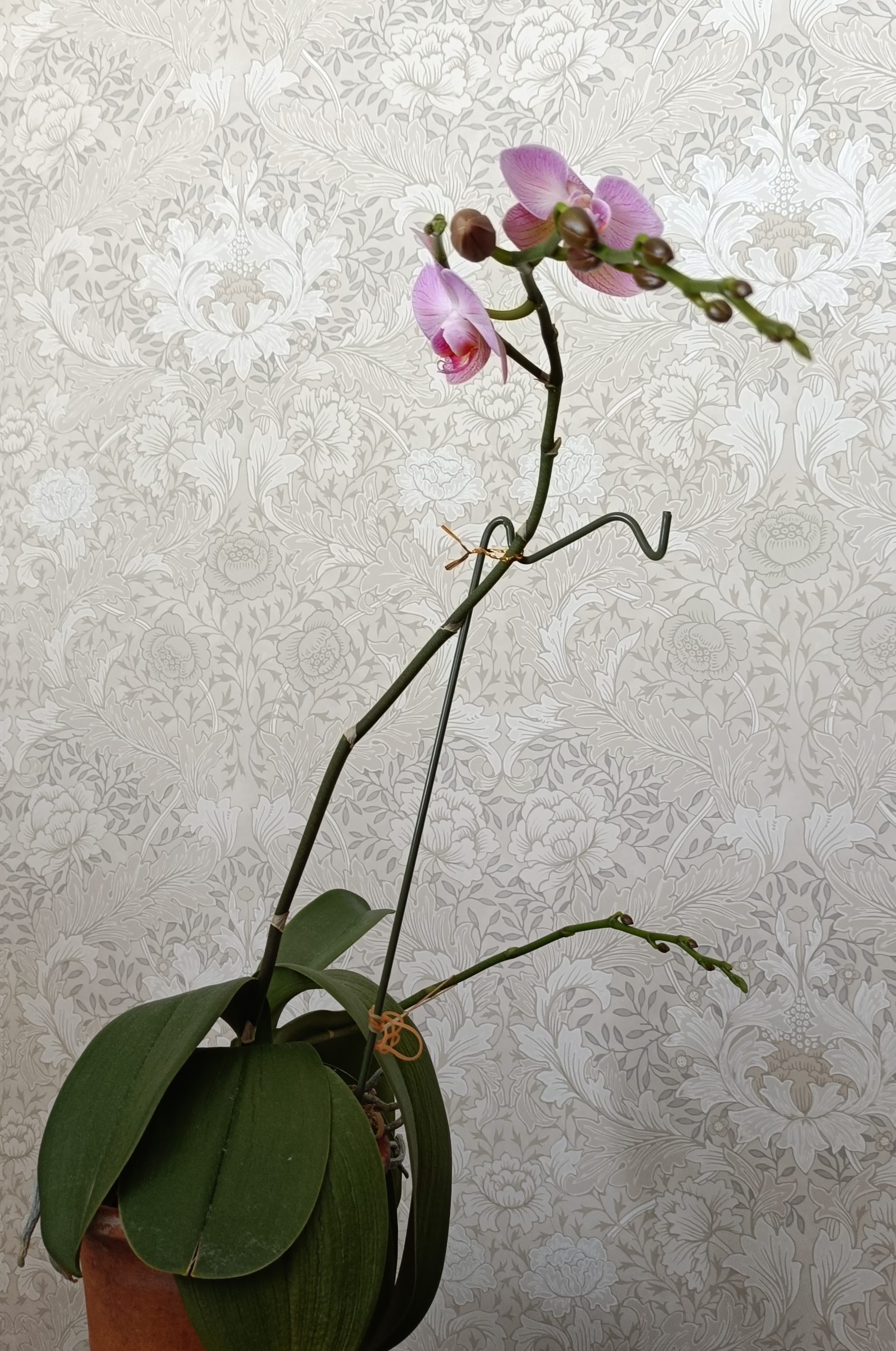 写真は、ようやく蕾が開き始めた我が家の胡蝶蘭